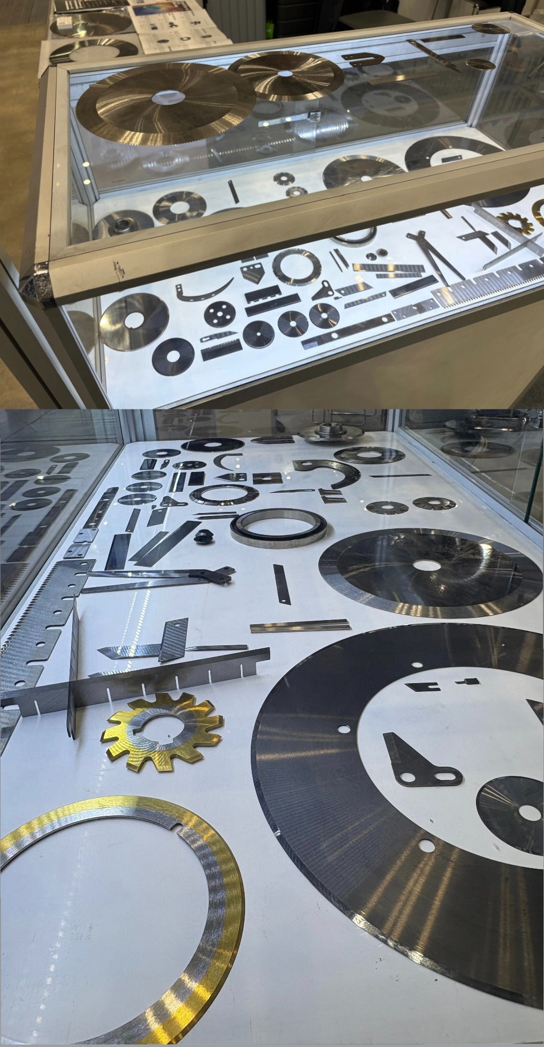 The HD KNIFE booth was designed around real product displays, highlighting our main industrial knife lineup and grinding capability.